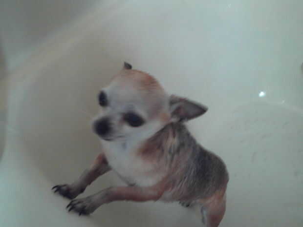 A continuación, saque el tapón de tu bañera y sacar a su perro de la bañera y envolver su perro en una toalla.