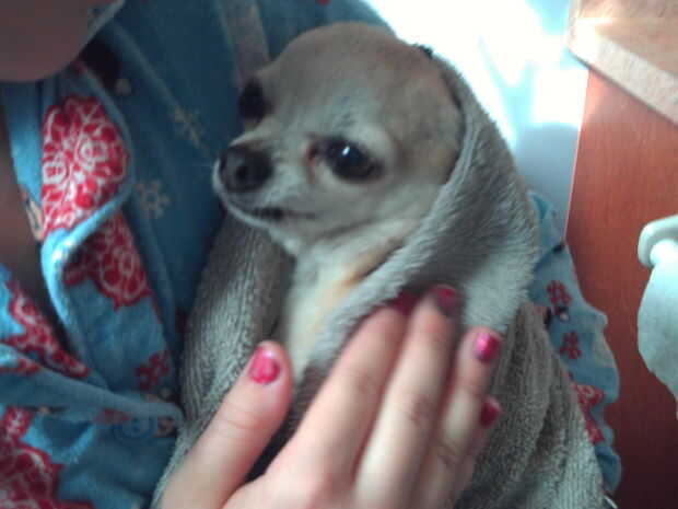 Después de eso, empieza a frotar la toalla con su perro en secar a su perro. Continúe este paso hasta que su perro se seque.