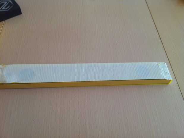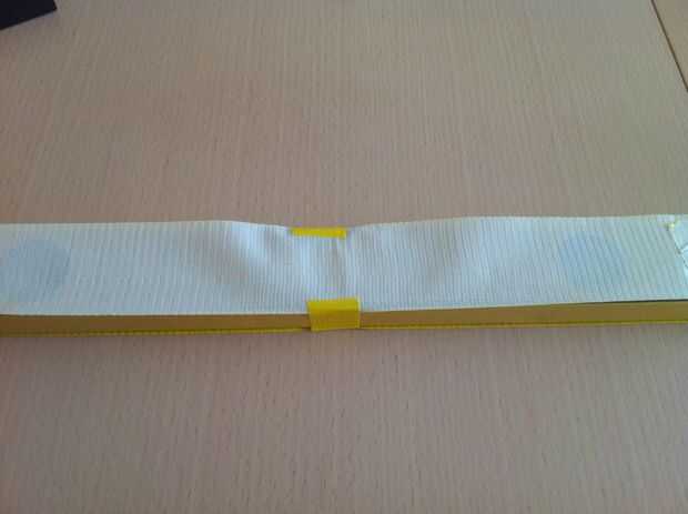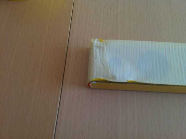 Mida 2 viajes si cinta (sólo alittle más grande que el objeto). Luego coloque el objeto en una de las tiras (lado pegajoso hacia abajo) y luego colocar el otro en la parte superior (lado pegajoso hacia arriba) entonces ellos juntos en el centro y en cada extremo del palillo