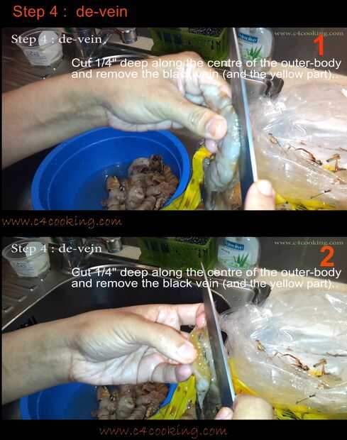 Cómo limpiar todo gambas / camarones - (corte, shell, quite la vena y limpiar) (4 / 5 paso)