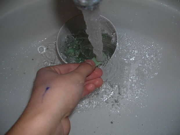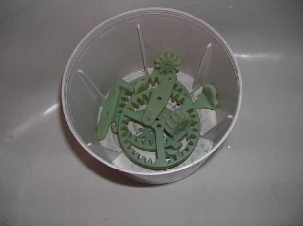 En primer lugar usted necesita tomar las piezas y ponerlas en el cubo. A continuación, abrir el grifo y deje que el agua van a través de ellos. Mira para las piezas pequeñas, puede ir fácilmente a través del agujero del cubo! Ahora toma una parte en un momento y lavarlos cuidadosamente.