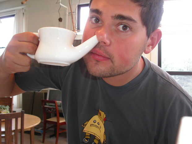 Agua comenzará a llenar su fosa nasal superior, fluyen en sus senos y después trabajar su camino a la fosa vacía en un flujo constante.