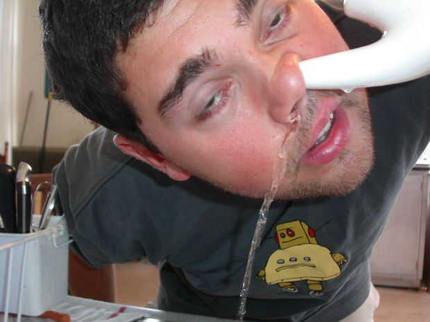Al llegar al final, dejar de verter el agua a través de sus senos y lentamente llevar la cabeza vertical otra vez después se drena toda el agua. Dar algunos golpes rápidos a través de la nariz para limpiar las cosas y comprobar lo que está en el fregadero abajo. La primera vez que hice esto algunas cosas grande salió, después de eso, realmente tengo que mucho "desechos nasales".