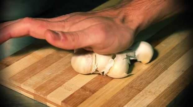 hacer un golpe con la palma de tu mano en un ajo, para romper en varios pedazos
