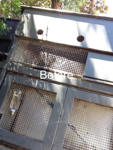 este aparador de conejo de interior/al aire libre aprovecha el calor del garaje en el otoño y el invierno y la fresca brisa en primavera y verano. Cortar algunos paneles en el exterior del garaje, así como la madera por debajo de modo que podían move