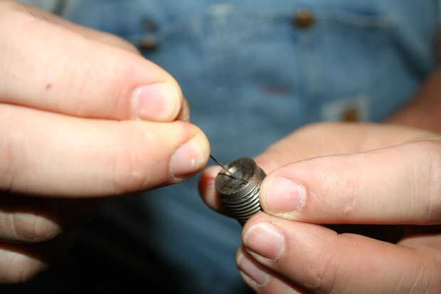 Con el breechplug o niple de quitar, limpiar. Utilizar una selección de"pezón" o una aguja para asegurarse de que no hay ninguna suciedad en el orificio pequeño. Si está sucia/conectado, tienes encendido deficiente o una falla total. Empape un trozo de hilo en aceite y correr hacia adelante y hacia atrás a través del orificio para prevenir el ensuciamiento futuro.