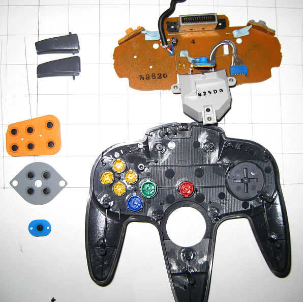 Dejar de lado botones y hojas de contacto en dos montones diferentes de limpieza. Hoja de contactos del botón Z se une con los clips, pero no debería ser demasiado difícil de quitar. (Imagen 4)