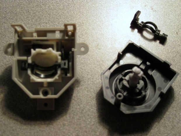 De esta manera, se revelarán las tripas de la palanca de control. El accesorio a la Junta Directiva debe eliminarse después de la apertura.
