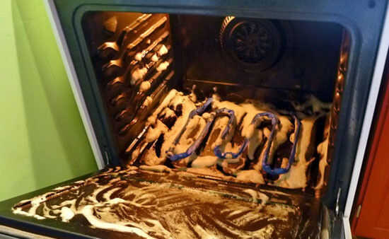 Limpieza horno hace gran con el metal interior pero con el tiempo deja un cocido al horno en película marrón que supongo es principalmente grasa.He leído una serie de soluciones incluyendo bicarbonato de sodio, amoniaco y vinagre. Nada daba resultado