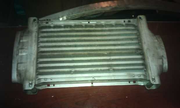 Busca dentro del intercooler de mi MINI Cooper S de ' 06 cuando tuve apagado recientemente, para reemplazar el compresor, me di cuenta de que el interior fue cubierto en una capa delgada de aceite. Esto disminuye la eficiencia del intercooler por ensuciar a la transferencia de calor entre las aletas del intercambiador y el aire que fluye a través de él. Esta es la solución que se me ocurrió.