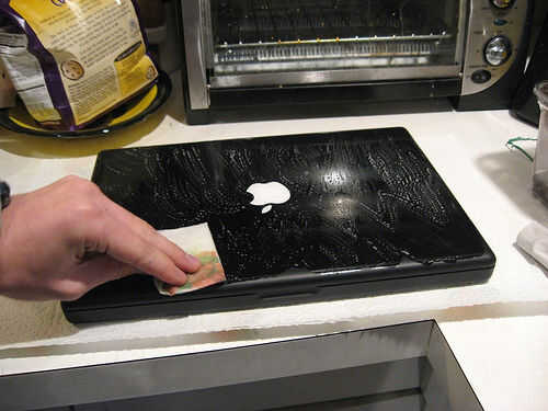 Pantalla de MacBook pro retina con una capa de cáscara de Rust-Oleum (como Plasti Dip)1) máscara de puertos2) limpiar la superficie3) rociado cinco abrigos de piel (más = acabado más grueso)4) Desprenda logo5) deje para secar por 24 horasPaso 1: Másc