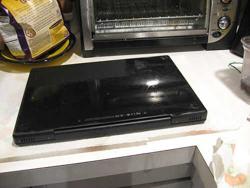 Lo mismo para el fondo y los lados del portátil, sólo no te jabón en las grietas alrededor de la batería y su cerradura, o en los puertos.