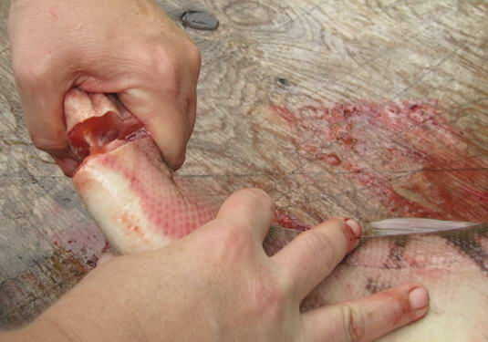 1. Limpiar el pescado bien tan pronto como sea posible después de contagiarse.2. Retire todas las entrañas desde el interior de los peces.3. ahora puede preparar el pescado como si vas a comer. Si el pescado es grande, cortado en tiras, y si el pesca