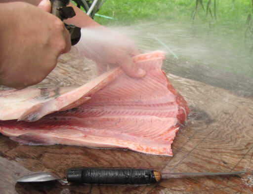 1. Limpiar el pescado bien tan pronto como sea posible después de contagiarse.2. Retire todas las entrañas desde el interior de los peces.3. ahora puede preparar el pescado como si vas a comer. Si el pescado es grande, cortado en tiras, y si el pesca
