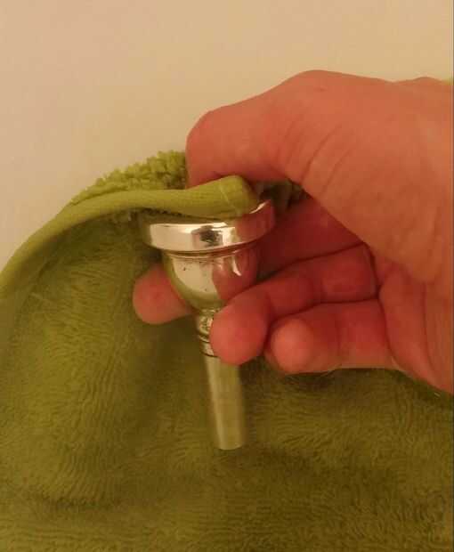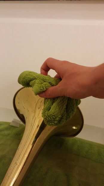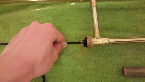 1. Coloque con cuidado cada pieza de trombón en la toalla de baño en la bañera.