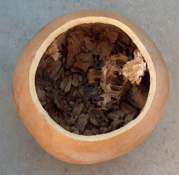 Ahora vean las fotos de las calabazas abiertas. Usted notará algunos están bastante vacíos, y algunas están llenas de materia vegetal seca y semillas casi a la cima. Algunos son crujientes y polvo, y algunos aspecto bastante lisos. Algunos tienen un rizado, piel seca dentro de que es fácil de sacar, y otros tienen un revestimiento blanco, espuma de poliestireno-como que no es tan fácil de limpiar.