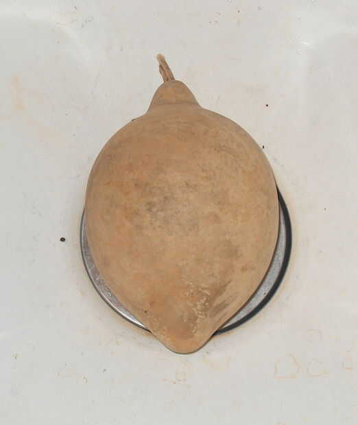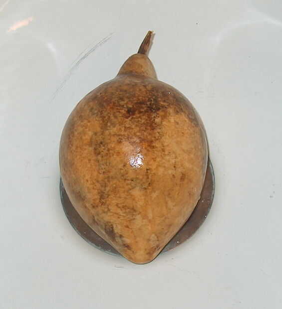 Esta calabaza es moteado de hongo y como resultado no era muy linda una vez limpio, como el espeso hongo oscurece las partes de la cáscara mientras que los blanqueos de sol piezas con disolvente o sin hongo. Si la calabaza es muy moteado de su agrado se puede establecer hacia fuera en el sol por unos días, que se descoloran ligeramente, o puede tratar de envolver en un trapo empapado de lejía para unas pocas horas (y luego enjuagar y secar). Ni opción es garantizada para aligerar la cáscara, pero de vez en cuando funciona.