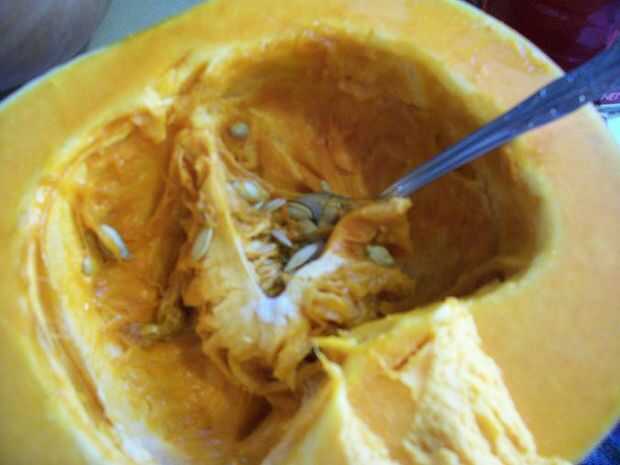 Tomar una cuchara grande y utilice una presión suave para raspar las semillas lejos de la masa ceñida, filamentosa, pegajosa que mantiene en su lugar. Si empieza desde el extremo del tallo y trabajar hacia abajo, que parecen estallar hacia fuera más fácil. Trate de cucharadas de semillas sin mucha tripa calabaza atado. Descarga estas semillas en tu toalla de papel (o contenedor o lo que sea.) Cuando tienes tantos como gustaría mantener, empezar a raspar más difícil con la cuchara. Si penetran en la carne un poquito, una capa delgada puede Raspe, que esta poco menos sucio. Algunos de mis calabazas tenían esta capa, algunos no.