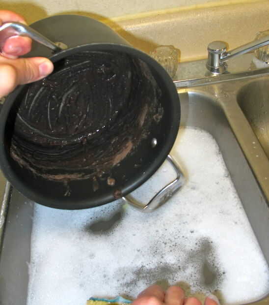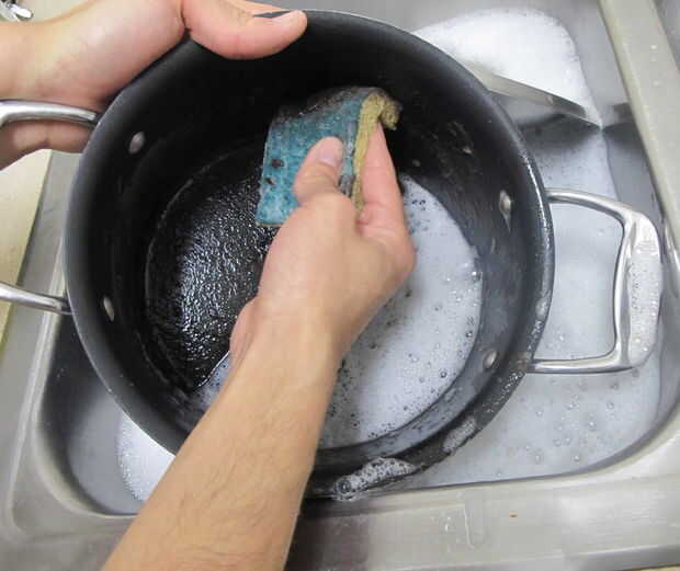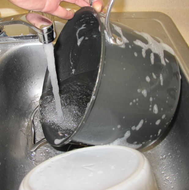 Imagen 1: Coloque los dispositivos de cocción en el agua jabonosa. (Dependiendo del grado de suciedad del agua es quizá deba rellenar el agua en este punto.)