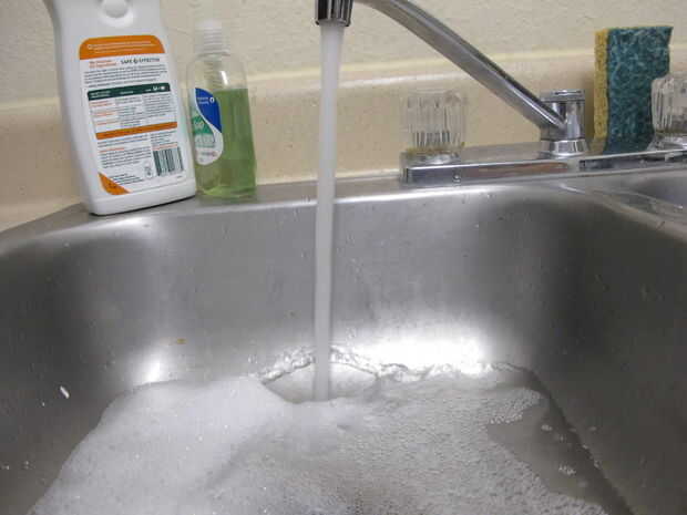 Imagen 3: Colocar el tapón en el fregadero y vierta algún jabón de plato. (Un poco puede ir un largo camino así que no se loco.)