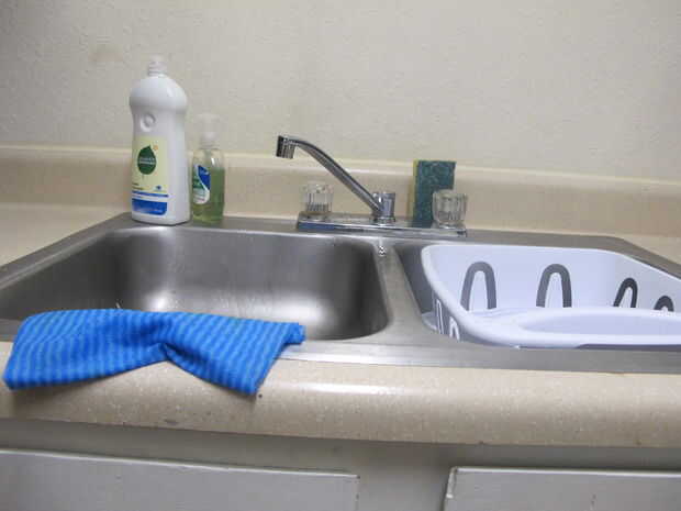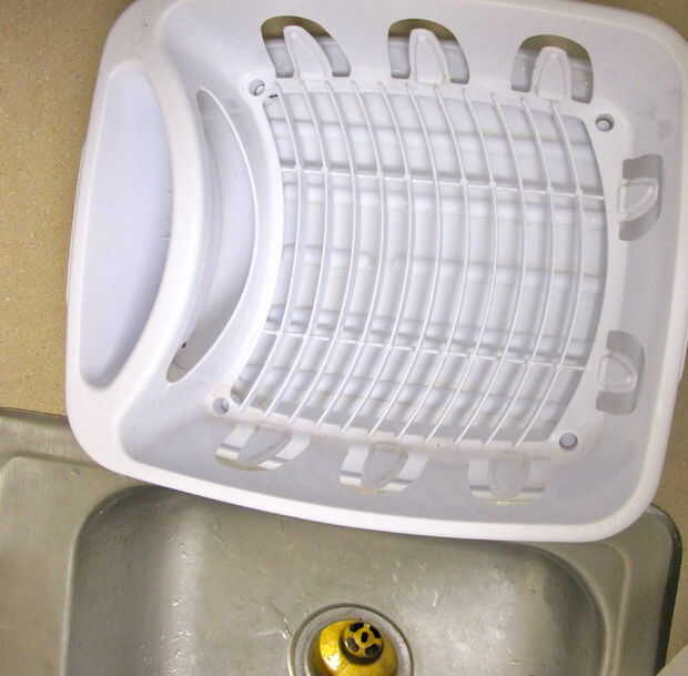 Imagen 2: Poner el plato de secador en el mostrador. (Esto es para que tengas más espacio para el enjuague más adelante).