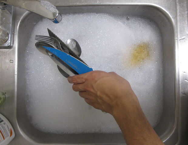 Imagen 1: Poner los cubiertos en el agua jabonosa.