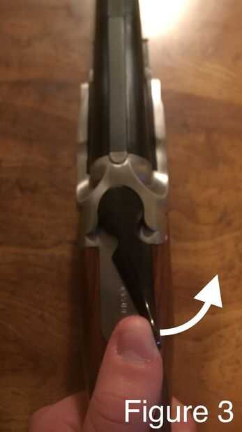 8. Deslice los cañones hacia arriba, lo que les permite separar de la acción (Figura 5).