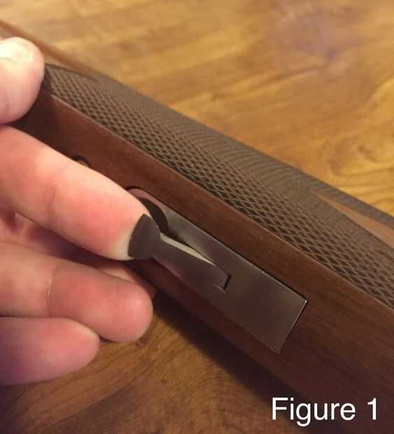 2. Tire de la parte delantera del guardamanos hacia abajo (Figura 2).