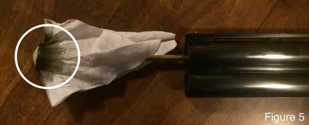 6. Repita los pasos 1 a 5 hasta que los trapos ya no tienen residuo negro capa después de ser empujado a través del cañón (Figura 6).