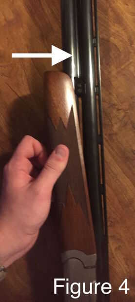 5. Presione el guardamano hacia arriba, en el fondo de los barriles, hasta que la delantera en su lugar (Figura 4).