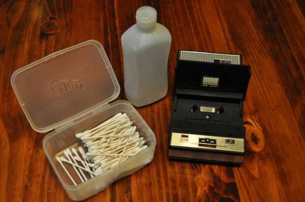 Necesita Q-tips u otras torundas de algodón de calidad. Los más baratos pueden ser frustrantes ya que no tienen suficiente algodón en el extremo o sale fácilmente. El siguiente punto que se necesita es alcohol desnaturalizado. Esto es lo recomendado por los técnicos de cinta como el líquido correcto. Alcohol desnaturalizado puede encontrarse en cualquier tienda de hardware pero el tema es que nunca he visto en menos de cuarto de galón tamaño de envases.