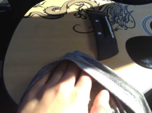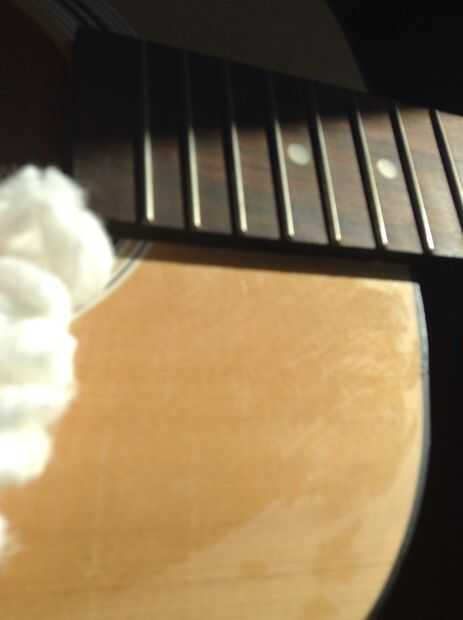 Luego mojar las bolas de algodón y limpie la guitarra sólo hasta que esté todo mojado