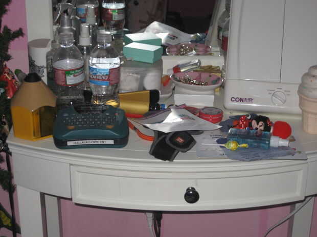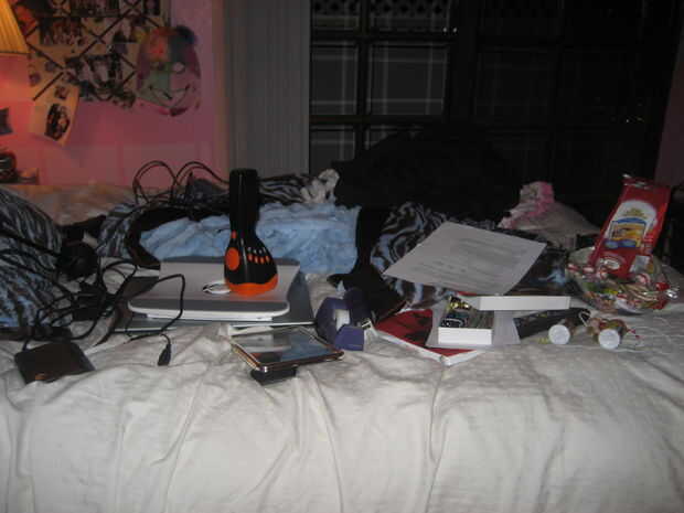 bien, personalmente mi escritorio se llena generalmente con un montón de cosas. así que primero, tome todo lo que basura, es decir: ordenador, bolígrafos, papel.