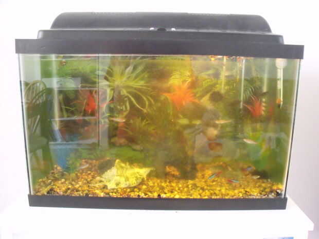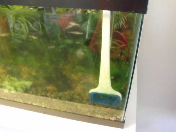 Puede utilizar una esponja especializada con un mango largo que se puede comprar en su tienda de peces locales.