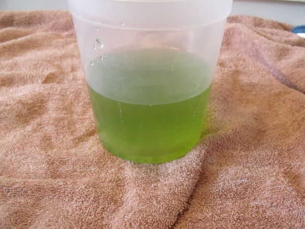 Después se friega a una elevación de poco la esponja del agua, verás las algas verde sobras, remojar la esponja en agua durante unos quince segundos. Esto eliminará la mayoría de las algas. El agua verde que ves en la última foto, no verter por el desagüe en su lugar se puede utilizar como flor o jardín de agua y alimentos.