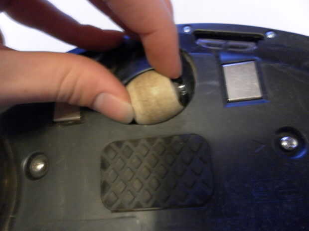 En primer lugar encontrar la rueda giratoria situada en la parte delantera de tu Roomba. Luego levante con sus dedos a lo largo de un lado de la rueda hasta que salga y luego hacer lo mismo para el otro lado y retire las ruedas de Roomba. Entonces jale hacia arriba el mecanismo giratorio y retírela. eliminar la suciedad en las grietas donde se sentaron la rueda y el eslabón giratorio, teniendo cuidado de no dañar el sensor de la Roomba. Luego coger la rueda y retire el eje presionando por un lado del eje hasta que quede a ras con la rueda y luego con un destornillador pequeño para empujar el resto del camino a través. Limpiar cualquier suciedad del eje y vuelva a insertar el eje en la rueda. Finalmente vuelva a colocar la rueda en el mecanismo de giro encajándola en su lugar y empuje la pieza giratoria del Roomba.