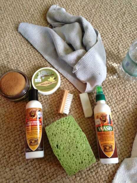 Los artículos que usted necesitará: trapos de silla de montar de jabón de silla de montar silla de montar occidental acondicionador 2 esponjas 1 o 2 * cepillo * limpiador de joyería * cepillo para gamuza * borrador ante