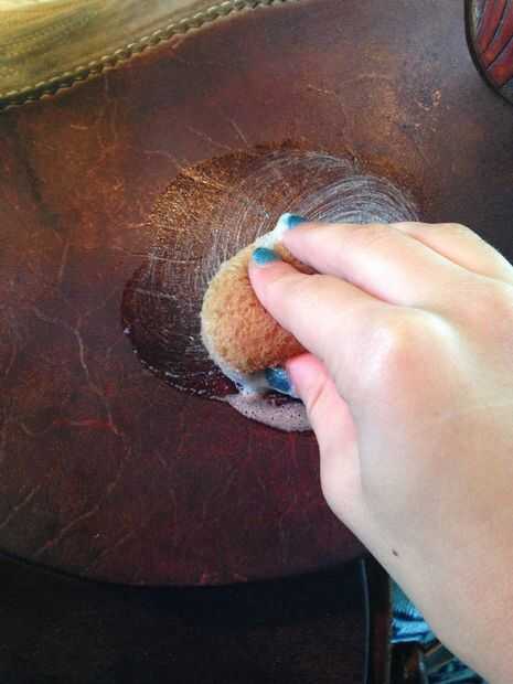 Utilizar el jabón de silla de montar con una esponja y un poco de agua. Utilice un movimiento circular. Esperar hasta todos si la espuma se han ido y limpie con un trapo. (Esto se pondrá la suciedad de superficie de la silla de montar)