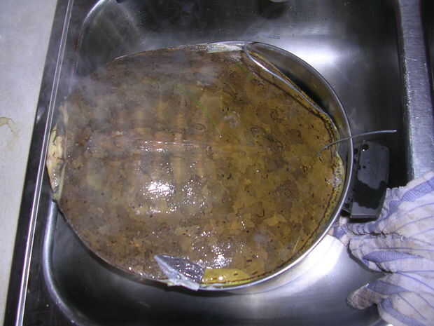 A continuación, llenar una olla grande con agua y llevar a ebullición. Sumerja la tortuga ahí y luego friega la tortuga con un cepillo duro. Mis tortugas eran demasiado grandes para caber, así que los cruce a mitad de camino (sosteniendo el gancho fuera sangrado era práctico) y luego se tira de ellas hacia fuera, luego cruce la otra mitad. Puede resolver un problema, estoy seguro. Revisa las imágenes para más detalles del proceso. Es bastante autoexplicativo.