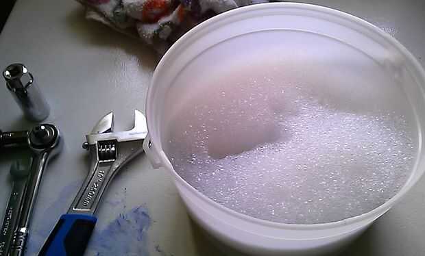 Llena un cubo en parte con agua jabonosa caliente y sumergir todas las partes y dejarlos reposar unos 15 minutos y luego les dio una vez con un paño apenas para asegurarse de que conseguí en los rincones y de rincones.