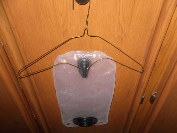 Antes de usar la suspensión, empujar unos trozos de toallas de papel en la abertura. Moverlas para obtener la mayoría del agua hacia fuera.