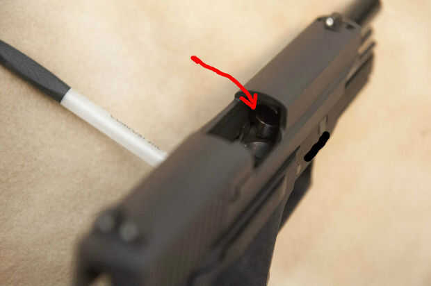 4. Empuje la corredera hacia adelante hacia el cañón y no se deslice la parte frontal.
