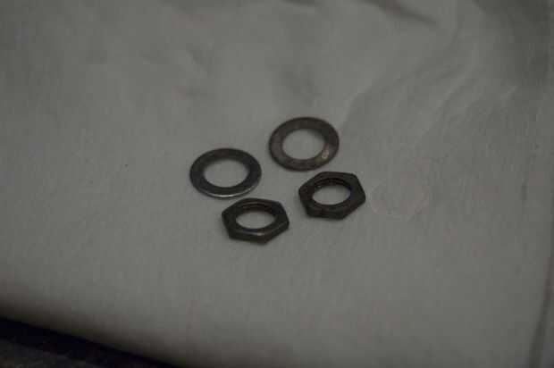 Obtener todos los componentes internos, cierre y tornillo de cierre y ponga la perilla de la palanca de mando de nuevo. Vuelva a colocar la olla tuercas y arandelas en. Los mandos deben estar un poco apretados.