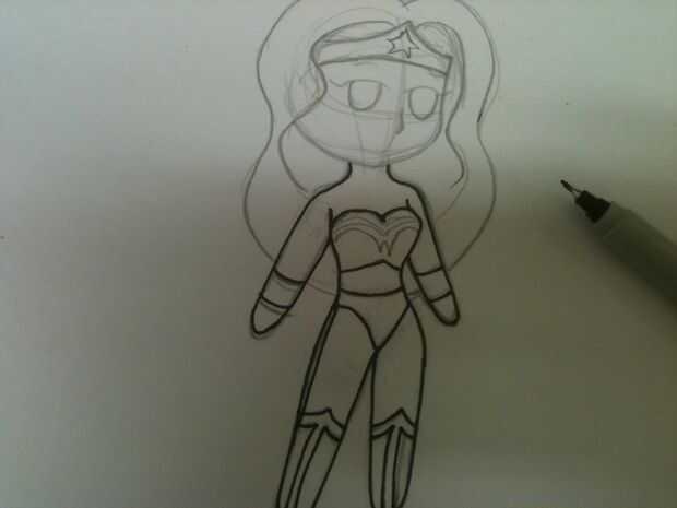 *Note* esto puede ser difícil conseguir el truco al principio, por lo que no se desanime! Incluso si usted comete un error o decide que no te gusta como se ve, usted puede fijar con Gimp. ¿Observe esa línea extra en muslo derecho de la mujer maravilla? He decidido después de la tinta que hizo su pierna mire demasiado recta, así que añadido a la línea segunda, más suave. A quitar la primera línea en el fase de retoque.
