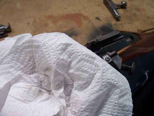 También, aunque no es necesario para este, aconsejaría poner una toalla sobre la culata de madera en áreas que podrían derramar el solvente. Que cosas se comen hasta el final y pueden estropear el caldo.
