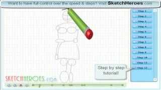 aprender Cómo dibujar Superboy (Young Justice) con el mejor tutorial de dibujo en línea. Para el tutorial completo con paso a paso y speed control visite: SketchHeroes!