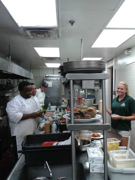 14. Coloque la comida sobre la mesa y preguntar si alguien desea un relleno de la bebida. Si es así, ponga inmediatamente las órdenes de recarga en el equipo.