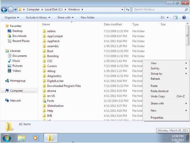 Desplácese a la carpeta "Windows", luego haga clic con el botón derecho un punto en blanco en la ventana y haga clic en "pegar". En Vista y 7, el UAC le pedirá que al menos una vez para confirmar que desea pegar. Quiere confirmar esto.
