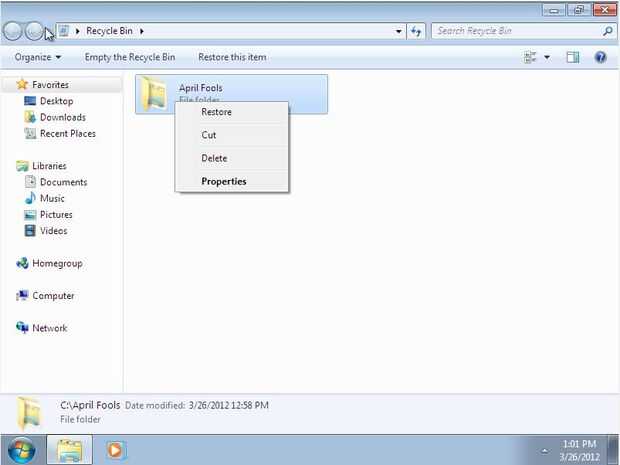 Ahora regresa y borrar la carpeta "April Fools" y eliminarlo de la papelera de reciclaje.