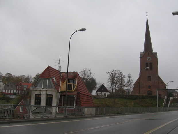 En el otro lado del puente hay una casa fácilmente ganando el premio a la peor situación nunca. atrapado entre la carretera principal a la ciudad (y hasta que construyó el puente nuevo, el único camino a la isla) y el Viejo ferrocarril pistas... incluso más sorprendente es que el dueño recientemente renovado y construido una pequeña terraza en la azotea, no puede esperar para mirar hacia las luces de tráfico próximo.